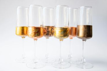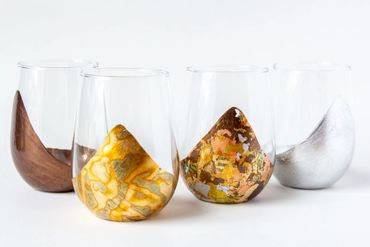 Personalize your glassware from the color to the writing. Have a larger or custom order? We can do that! Premium metals and custom writing on wine glasses and cocktail glasses.
